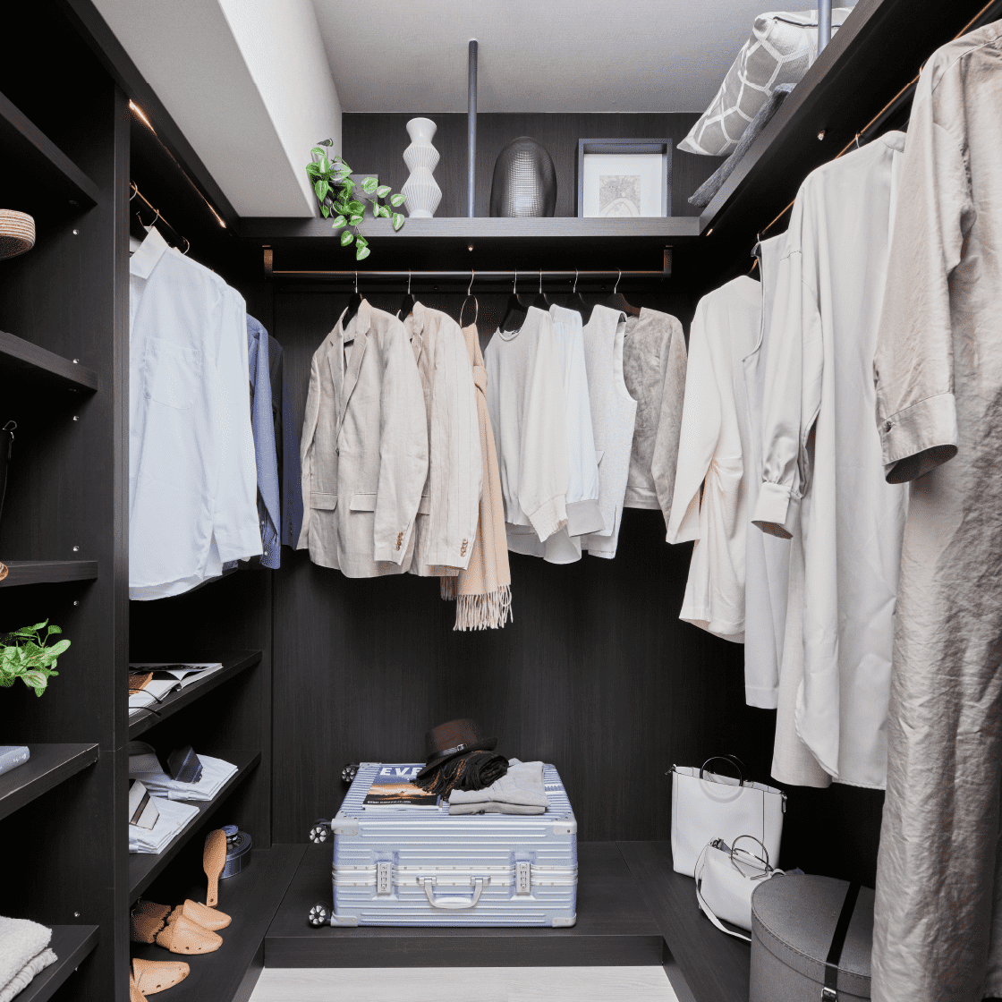 鞄や靴も収納できる大容量のウォークインクローゼット