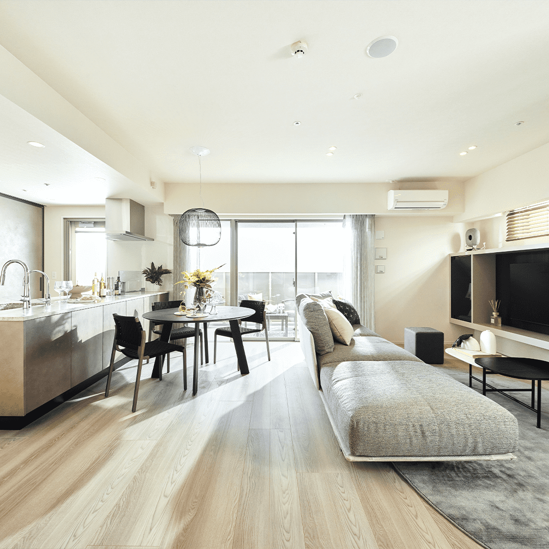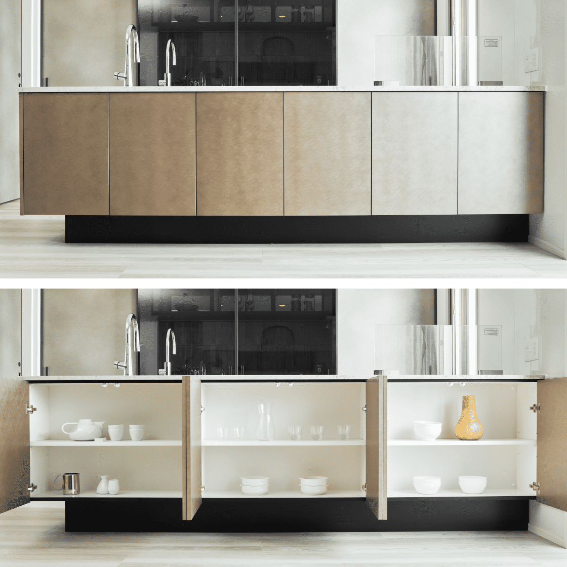 暮らしに寄り添う使い方自在な背面収納付きキッチン
